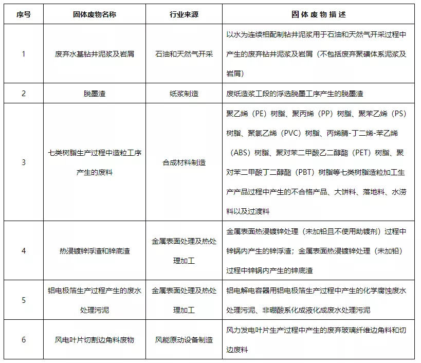 三是相關科研機構已開展系統的行業調查研究和環境風險評估的固體廢物。