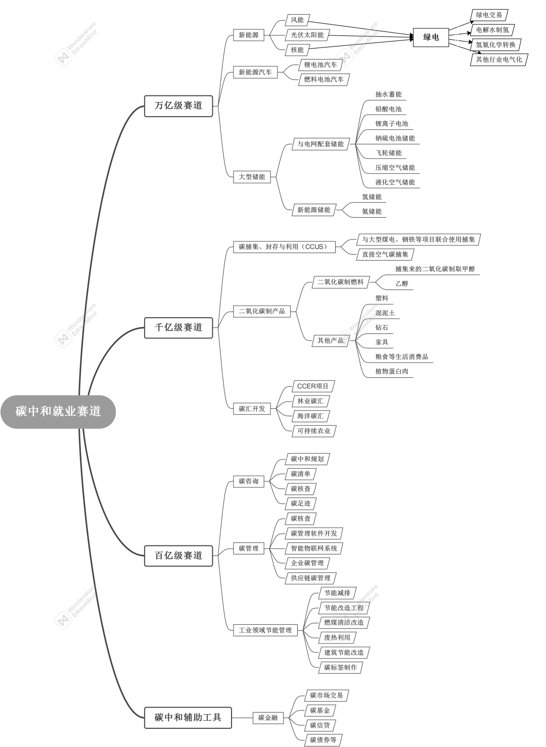 為了實現(xiàn)碳中和目標,目前有幾個賽道基本成型,市場規(guī)模很大,都是萬億級的規(guī)模。