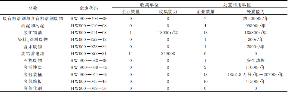 表2 無(wú)錫市汽車維修危險(xiǎn)廢物處置能力一覽